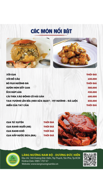 SET MENU CÁC MÓN ( 10 người )